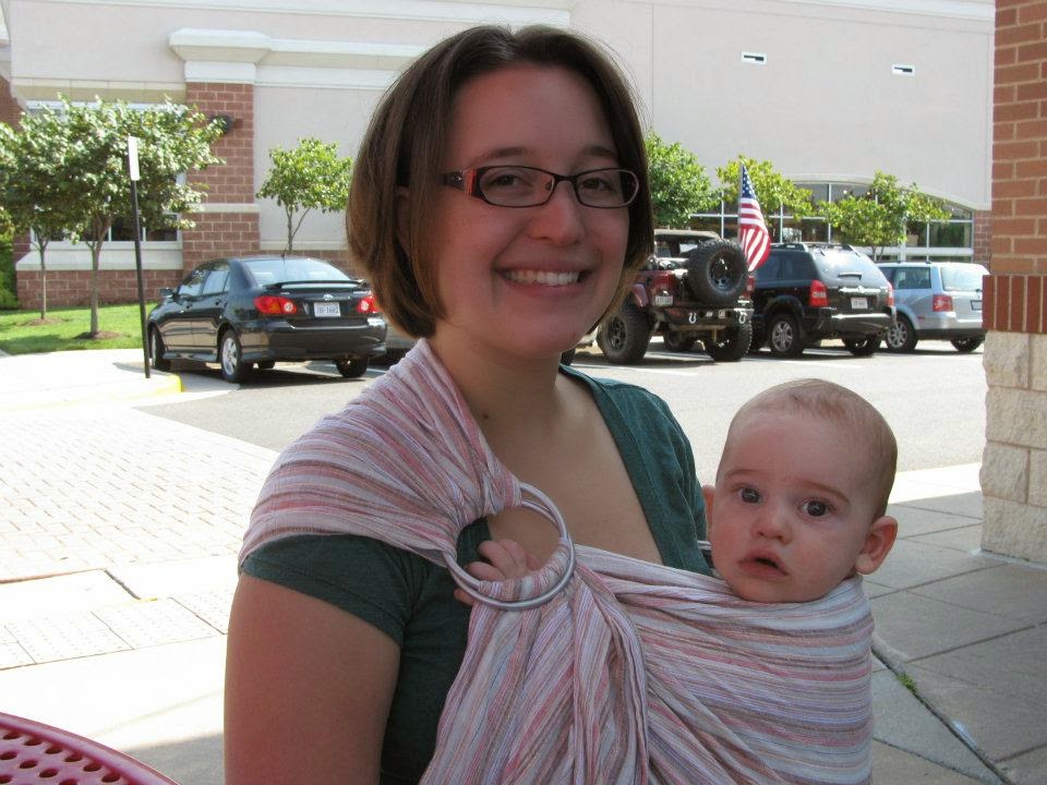 baby and a house that was still half full of boxes. My goal was to have the house put together before he got home. I started using cloth diapers around this time, and it was while shopping at the local cloth diapering store that I was first introduced to the idea of babywearing. I walked in carrying D in his car seat, and the first thing I saw was the employee behind the counter wearing her baby in something that looked like a backpack. I asked her about it. I walked out that day with my first carrier and information about a local babywearing group.